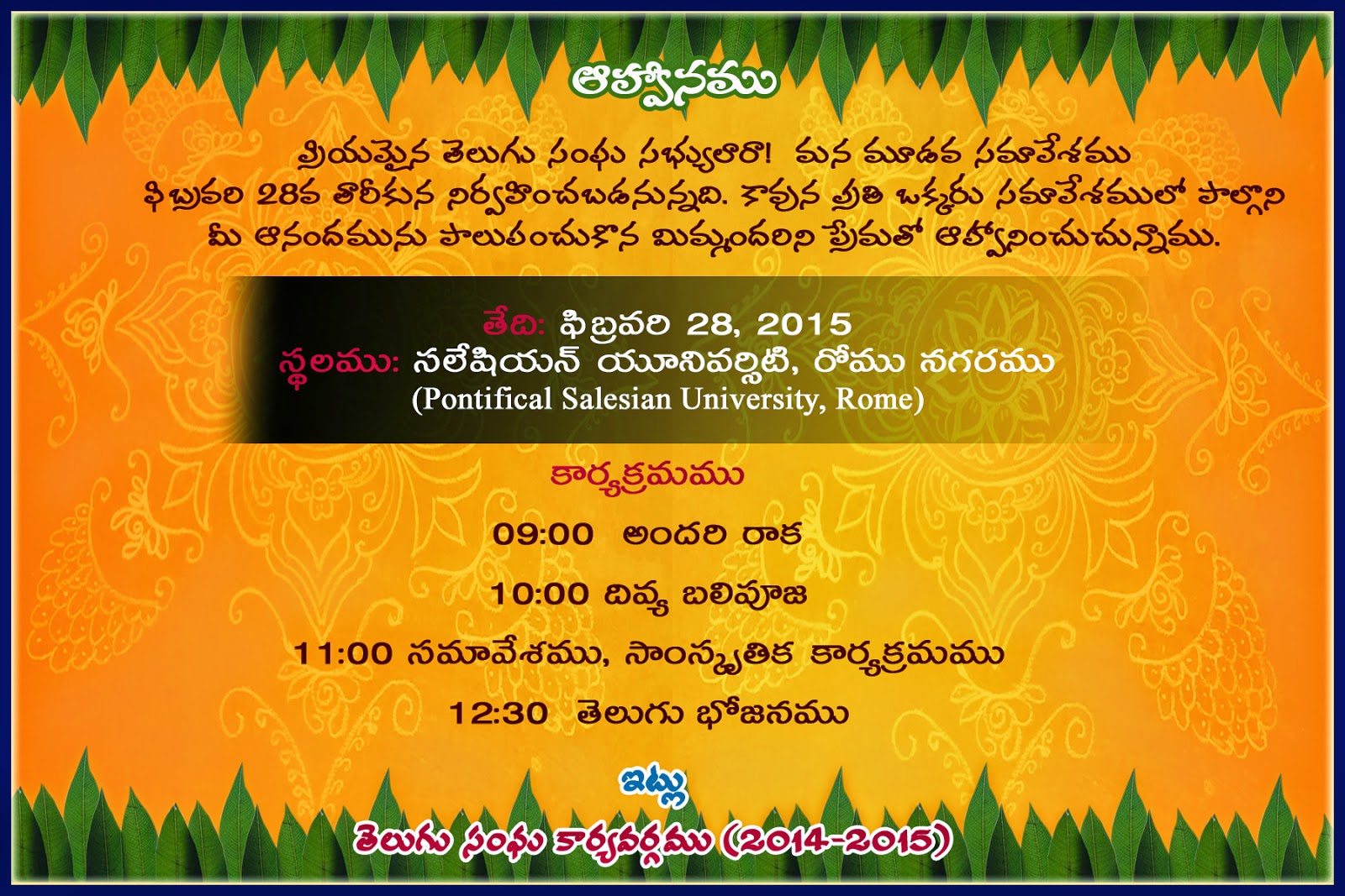 Telugusangham, Rome (2014-2015)